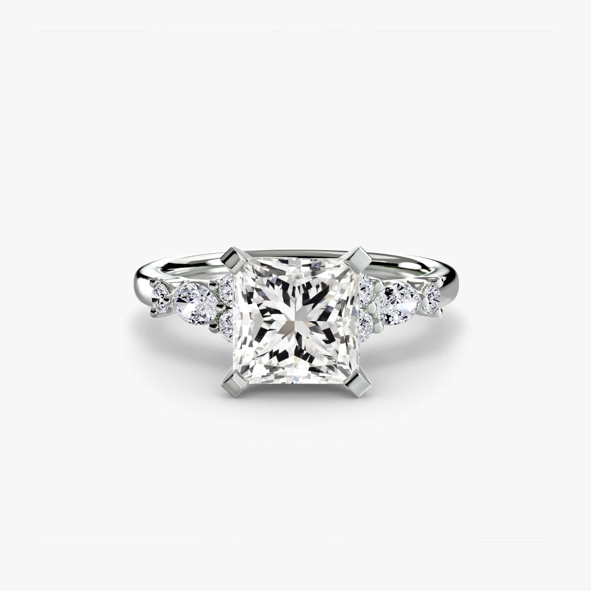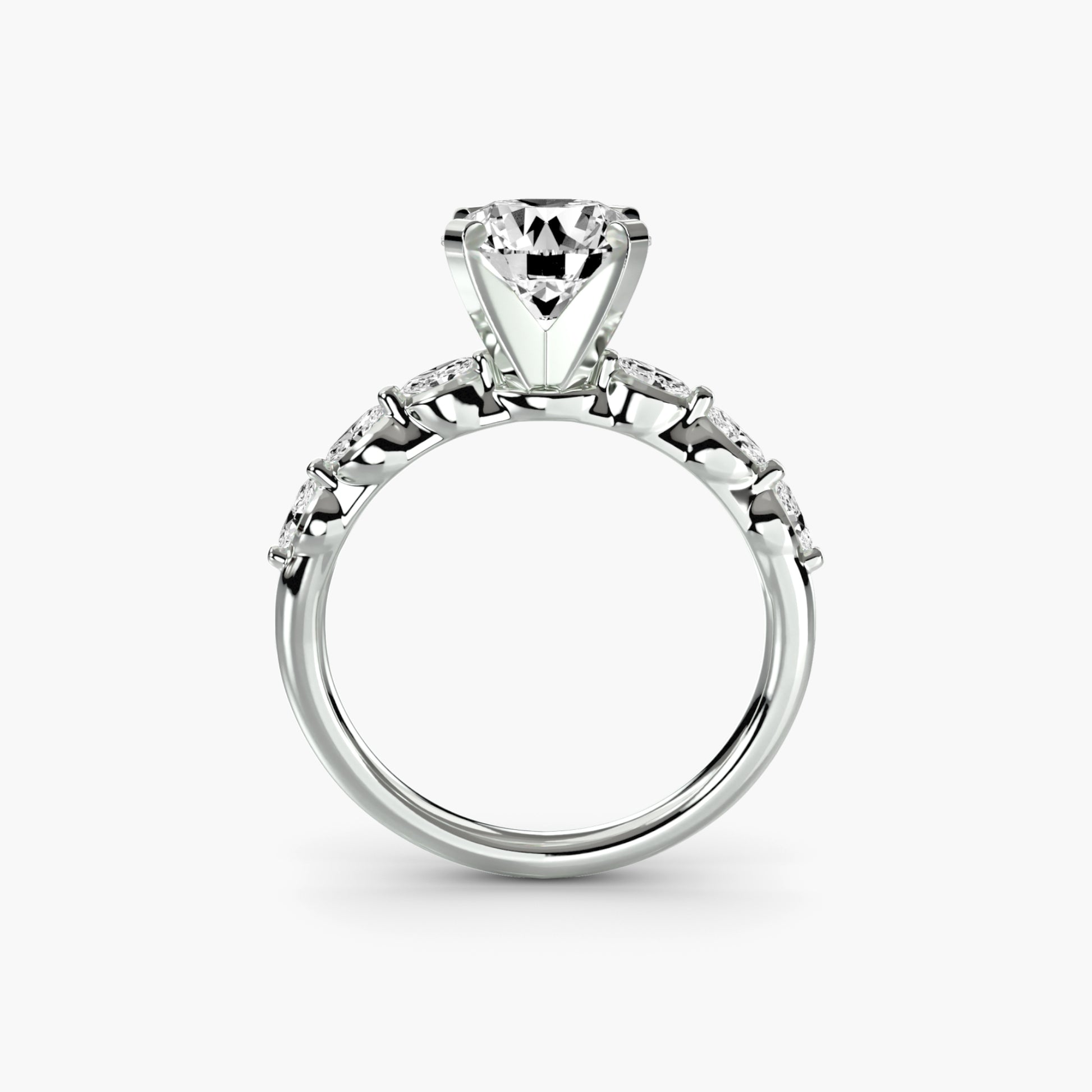 Designed with side stones that gracefully complement the center stone, this ring strikes a balance between classic elegance and added brilliance. Perfect for those who want a refined look with just the right amount of sparkle.