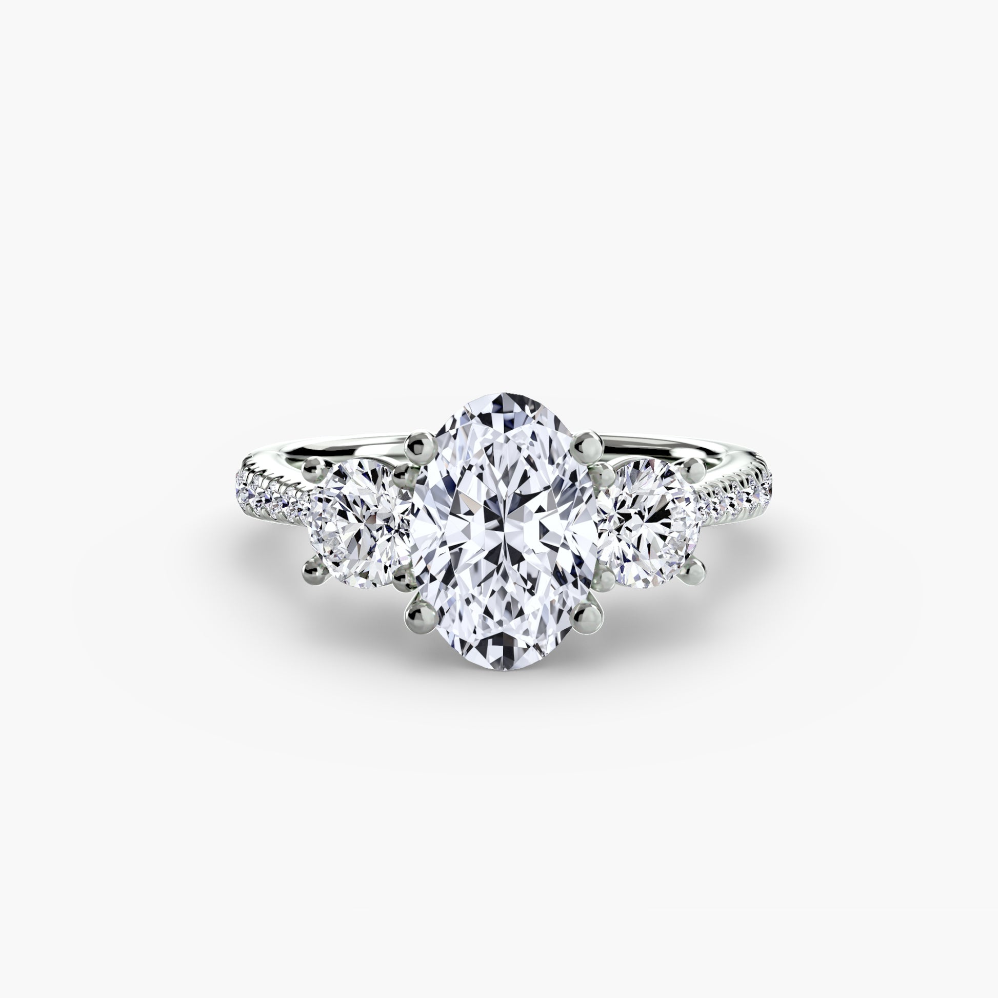This elegant three-stone ring symbolizes your past, present, and future, elevated with a pavé band for extra sparkle and detail. A perfect union of meaning and brilliance.